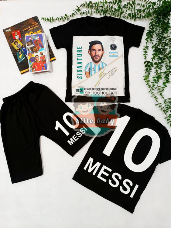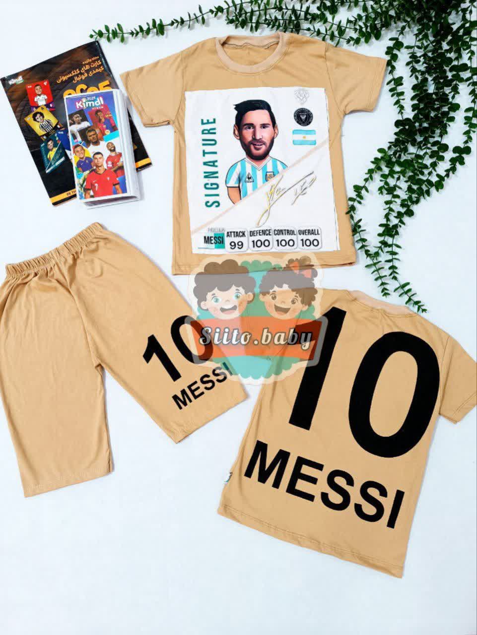 ست تیشرت شلوارک پسرانه کیمدی فوتبال طرح مسی امضا دار سایز ۵۰ ، ۵۵