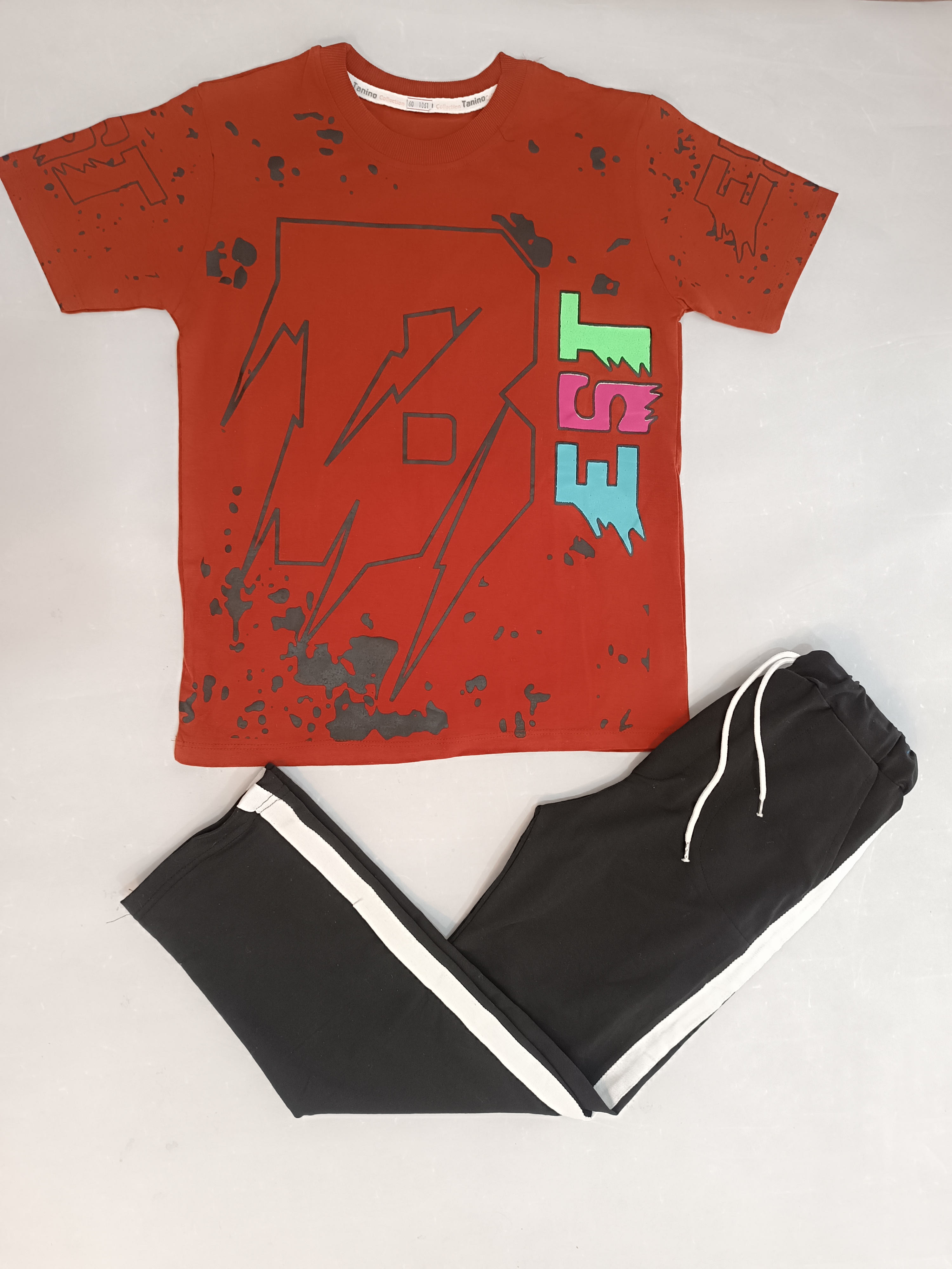 ست تیشرت شلوار حروف مناسب سن ۹ تا ۱۴ سال سایزبندی ۶۰ ، ۶۵